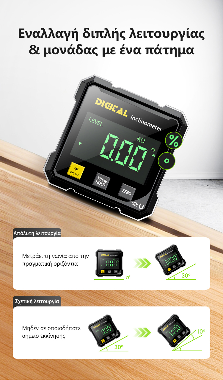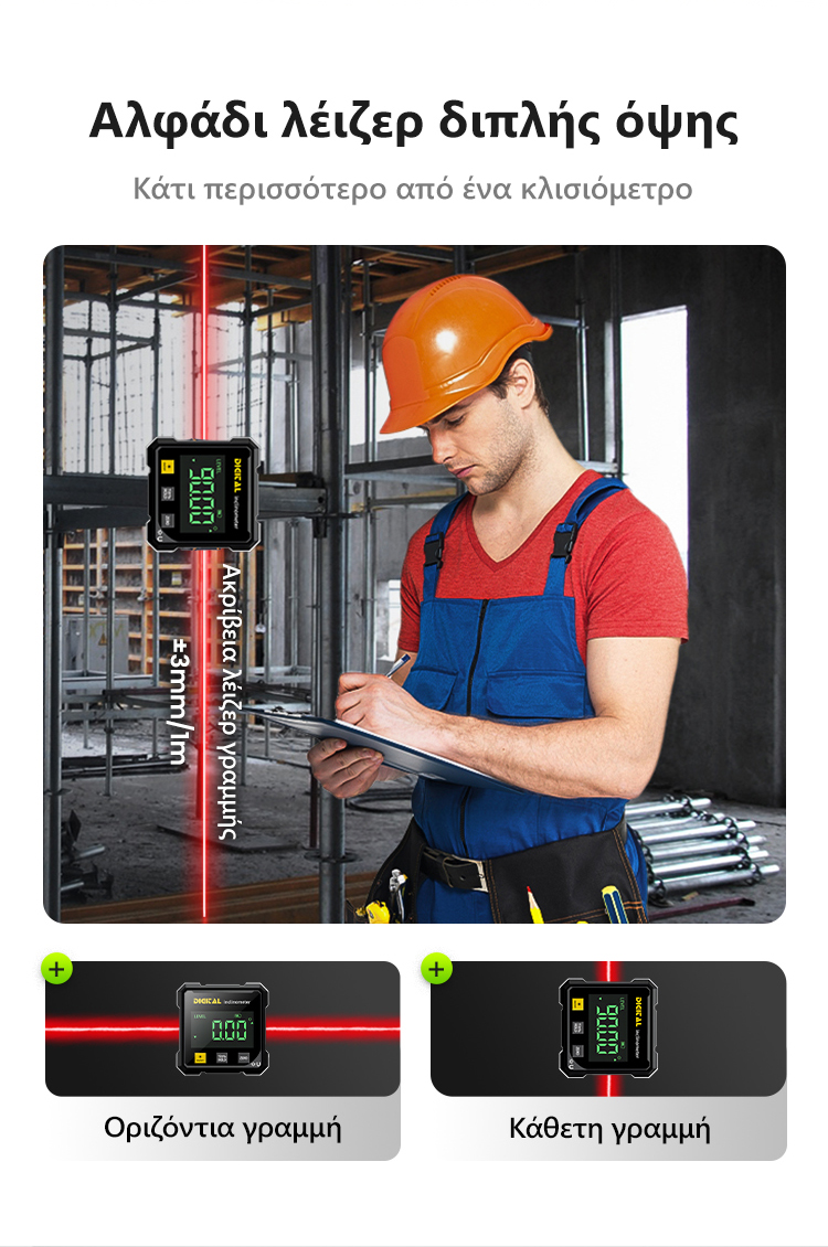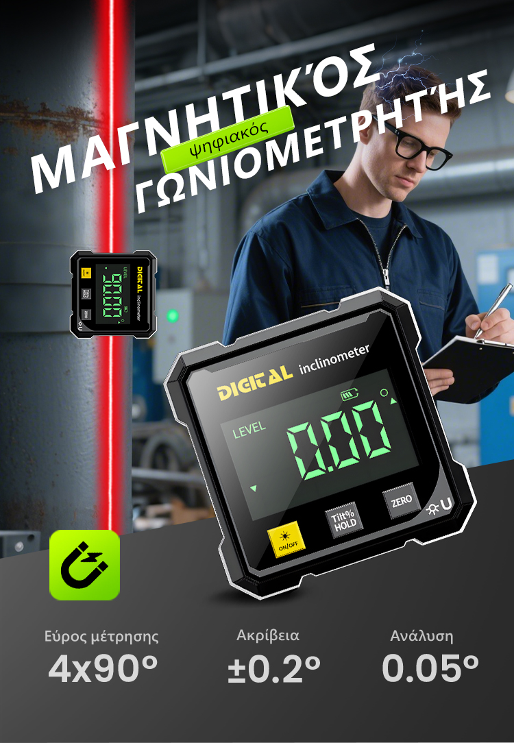 📐 Μαγνητικό ψηφιακό μοιρογνωμόνιο τεσσάρων όψεων με λέιζερ 👷👍